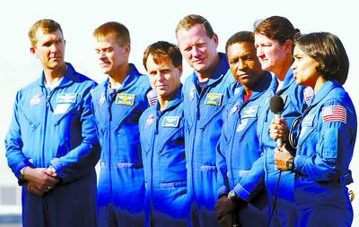 2003年2月1日,美國(guó)“哥倫比亞”號(hào)航天飛機(jī)在完成飛行任務(wù)返航途中解體爆炸。圖為航天飛機(jī)上7名機(jī)組人員的全體照片,拍攝時(shí)間是2002年12月20日。從左到右為:里克·赫斯本德、威廉·麥庫(kù)爾、伊蘭·拉蒙、邁克爾·安德森、戴維·布朗、勞雷爾·克拉克和卡爾帕娜·喬娜。