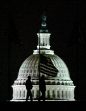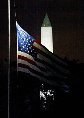 美國東部時間2月1日上午9:00(北京時間1日晚10:00),就在“哥倫比亞”號航天飛機(jī)即將返回佛羅里達(dá)州的肯尼迪航空中心前數(shù)分鐘,該飛船突然發(fā)生分裂解體現(xiàn)象,有碎片從飛船上落下。機(jī)上7名宇航員沒有生還的跡象。圖為:美國華盛頓降半旗紀(jì)念哥倫比亞號失事宇航員。