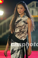 身著著名設計師房瑩新款時裝的模特,新春佳節(jié)在海南三亞亞龍灣上演時裝秀。作者:毛建軍