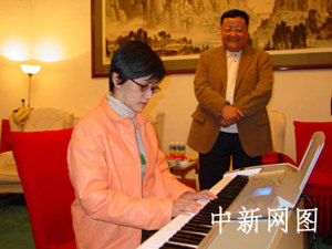 餐畢,海若在家人的攙扶下走上二樓會客廳。廳中央放著一架嶄新的電子鋼琴,6歲的小外甥女跑過去彈奏起來,海若馬上表示:“喔,鋼琴?我也會!彼S即坐到鋼琴前,雙手流暢地彈了起來。