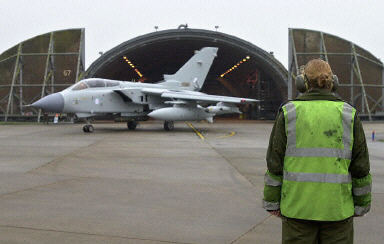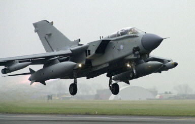 10日,英國皇家空軍“旋風(fēng)”式GR4型戰(zhàn)斗攻擊機(jī)從位于諾?,瑪哈姆的空軍基地起飛前往波斯灣地區(qū)增援。