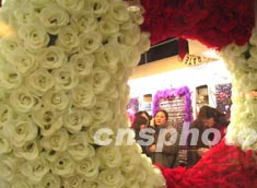 二月十三日,北京東方新天地的一家自制首飾店于情人節(jié)期間推出情侶飾品,一名女士正在試戴自制的耳環(huán)。作者:廖文靜
