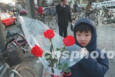 情人節(jié)又到了,北京一位中年男子(打手機者)攜子前往花市購買了玫瑰花,準備給妻子一個驚喜。如今,過西洋“情人節(jié)”不再是年輕人的專利。作者:俞麗偉