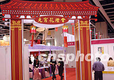 第三十屆情人節(jié)婚紗及結婚用品展,二月十四日在香港會展中心開幕,參展商為歡度元宵佳節(jié)在展會上搭起燈會牌坊。作者:錢興強