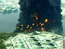 美國?松凸舅鶎俚倪@座油庫緊鄰一碼頭。紐約消防部門提供的信息說,一艘裝有丙烷的貨船在油庫附近爆炸起火,火勢迅速波及油庫貯油設(shè)施并引發(fā)了第二次爆炸。