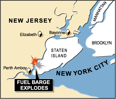 消防官員初步報告稱,當(dāng)時有油輪在搬運(yùn)物品時因不明原因起火。目擊者稱,巨大的爆炸聲很遠(yuǎn)就能聽到,濃煙在紐約市中心曼哈頓地區(qū)都可以看到。