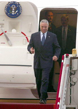 中新網(wǎng)2月23日電 美國國務(wù)卿鮑威爾乘坐的飛機(jī)抵達(dá)北京首都國際機(jī)場,開始對中國進(jìn)行訪問。