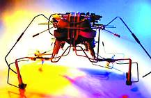 在模仿登陸火星的試驗中,一輛漫游車攜帶的機器蜘蛛臨時替代出故障的無線電設(shè)備將信息傳送回總部。這個大出風(fēng)頭的機器蜘蛛,便是美國宇航局噴氣推進(jìn)實驗室設(shè)計的昆蟲式機器人,它擁有異常靈活的腿,能跨越障礙,攀登巖石,探訪其他靠輪子滾動前進(jìn)的機器人無法抵達(dá)的區(qū)域。