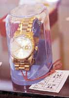 據(jù)說慕綏新當(dāng)時(shí)定制這套球桿的價(jià)格高達(dá)二點(diǎn)五萬美元,而今天這套球桿的起拍價(jià)僅為一千零八十元人民幣。這套球桿起拍開始后,隨著競標(biāo)人一次次加價(jià),其價(jià)格就一路狂奔、節(jié)節(jié)攀升,現(xiàn)場氣氛極其熱烈。當(dāng)一位大連商人喊出十萬零一千元的高價(jià)后,一位董姓商人當(dāng)即喊出十二萬元的高價(jià)。這只十二高爾夫球桿最終以每桿一萬元的高價(jià)歸到了這位志在必得的董姓商人名下。據(jù)說這位行蹤神秘的董姓商人來自外地,高價(jià)買下這十二只球桿是要作為反腐敗教育的永久性紀(jì)念,他拍賣成功后便迅速離開現(xiàn)場,不肯接受記者采訪。當(dāng)劉志堅(jiān)敲響今天上午最后一聲悅耳有力的拍賣槌時(shí),今天上午的拍賣會以一百九十六點(diǎn)五萬元的最終成交額“一錘定音”。這比拍賣師事先估計(jì)的成交額高出六十多萬,包括兩套住宅、一個(gè)車庫、兩個(gè)“五愛市場”檔口以及高爾夫球桿、進(jìn)口跑步機(jī)等七個(gè)運(yùn)動器械共計(jì)十二個(gè)標(biāo)的順利拍賣成功。