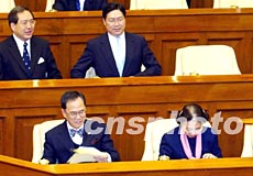 香港政務(wù)司、律政司等列席財(cái)政預(yù)算案.香港政務(wù)司長(zhǎng)曾蔭權(quán)、律政司長(zhǎng)梁愛(ài)詩(shī)等政府高官,3月5日列席立法會(huì)聽(tīng)取財(cái)政司司長(zhǎng)梁錦松提交2003至2004年度財(cái)政預(yù)算案。洪少葵 攝