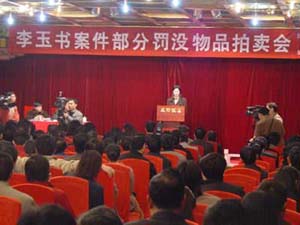 據(jù)悉,此次拍賣活動是四川省繼拍賣原四川省交通廳副廳長鄭道訪贓物后第二次拍賣貪官贓物。由成都市財政局,成都市人民檢察院主辦,由成都市東方拍賣公司拍賣,估價在三百萬左右,就金額而言,約占其非法所得的三分之一。這批贓物于六日起在成都飯店蜀樂宮向市民公開展示,除李玉書為其情人購置的兩套高檔住房、一套臨街商鋪和一輛白色富康轎車外,還有兩只瑞士原裝的勞力士手表、手提式電腦、派克鋼筆、空調(diào)、紅木沙發(fā)等物品。