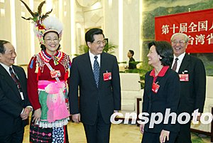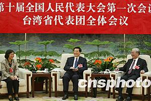 胡錦濤向臺灣代表團的各位代表,并向廣大臺灣同胞致以誠摯的問候。會場上,發(fā)言踴躍,親情融融。胡錦濤認真聽取大家的發(fā)言。他說,中共十三屆四中全會以來,我們堅持“和平統(tǒng)一、一國兩制”的基本方針,應對挑戰(zhàn),排除干擾,大力推動對臺工作,取得了重大成果。國際社會普遍堅持承認一個中國的基本立場,兩岸關系的基本格局和發(fā)展趨勢沒有改變。這是以江澤民為核心的第三代中央領導集體正確決策和堅強領導的結果,是包括臺灣同胞在內的全體中華兒女共同努力的結果。