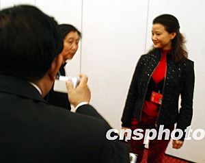 再次當(dāng)選全國政協(xié)委員的中國著名青年歌唱家宋祖英,三月參加十屆一次會議中忙于接受各界人士的簽名合影請求,中午散會后往往是脫不開身的最后一人。作者:賈國榮