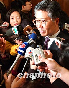 再次出任衛(wèi)生部部長的張文康十七日就非典型性肺炎回答港臺記者提問。作者:鄭萍萍