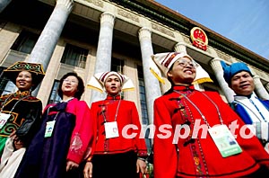 圖:少數(shù)民族代表離開人大會場