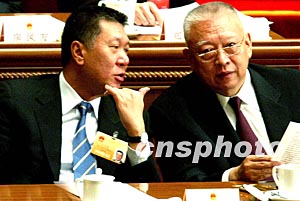香港特別行政區(qū)行政長官董建華和澳門特別行政區(qū)行政長官何厚鏵,十八日出席在北京舉行的十屆全國人大一次會議閉幕會。作者:鄭萍萍