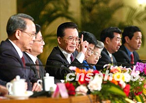圖:溫家寶和副總理們一起與記者見(jiàn)面