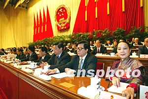 十屆人大一次會議十八日上午在北京人民大會堂閉幕,圖為刀美蘭、于均波、習(xí)近平(從右至左)等代表們按表決器通過各項決議。作者:毛建軍