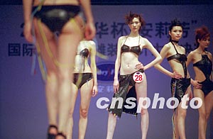 一名模特二十日在上海國際服裝節(jié)的“中華杯”內(nèi)衣/沙灘裝設計決賽表演。作者:劉殊瑾