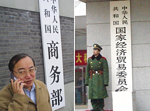 沒有儀式、沒有聲張,25日清晨,北京東長(zhǎng)安街2號(hào)懸掛了10年之久的“中華人民共和國(guó)對(duì)外貿(mào)易經(jīng)濟(jì)合作部”的牌子被摘了下來,取而代之的是“中華人民共和國(guó)商務(wù)部”的大牌子。