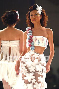 香港皮草服飾二十五日晚在北京舉行的中國(guó)國(guó)際時(shí)裝周上亮相,模特展示設(shè)計(jì)考究、做工精美的2003香港新款皮草。作者:毛建軍
