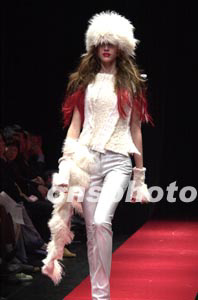 二00三年東京秋冬時(shí)裝展二十六日晚拉開帷幕,在近一個月的展期中,日本時(shí)裝設(shè)計(jì)師們將發(fā)表五十多個品牌的新作品。圖為設(shè)計(jì)師白浜利司子二十六日晚率先發(fā)表她的羊毛作品。作者:陶光雄