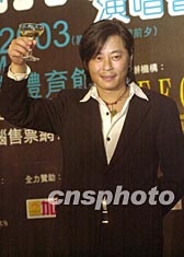歌星王杰3月28日在香港出席“Neway一夜情歌王杰演唱會”記者會。是次演唱會將以“一夜情歌”作主題會歌迷,以獨特風(fēng)格,為歌迷帶來驚喜,圖為王杰為預(yù)祝個唱成功舉杯。鄧慶樂 攝