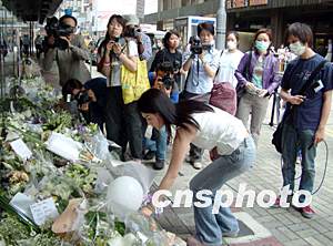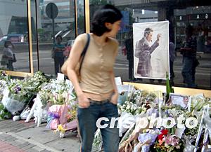 多圖:文華酒店外有不少張國榮歌迷獻(xiàn)花致哀