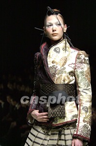 日本著名時(shí)裝設(shè)計(jì)師HIROKO KOSHINO四月三日晚在二00三年?yáng)|京秋冬時(shí)裝展上發(fā)表了她的最新作品,希望通過(guò)現(xiàn)代手法來(lái)表現(xiàn)日本傳統(tǒng)服飾的美感。作者:陶光雄