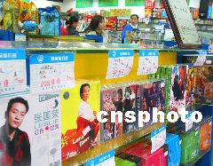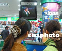 2003年4月2日下午,南京中山東路幾家音像店正在播放張國(guó)榮的音樂(lè)VCD,并有張國(guó)榮新音樂(lè)VCD面世。明后兩天,將會(huì)有新一批張國(guó)榮的音響制品到。吳芒子 攝