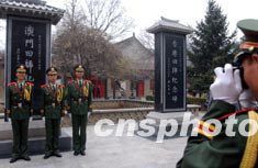 清明公祭軒轅黃帝典禮五日在陜西省黃陵縣軒轅廟前廣場舉行,出席典禮的陜西省武警總隊(duì)國旗護(hù)衛(wèi)隊(duì)的武警在軒轅廟內(nèi)的港澳回歸紀(jì)念碑前留影。作者:武仲林