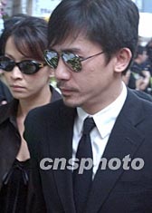 香港影帝梁朝偉四月八日在香港出席已故巨星張國(guó)榮舉殯。作者:錢(qián)興強(qiáng)