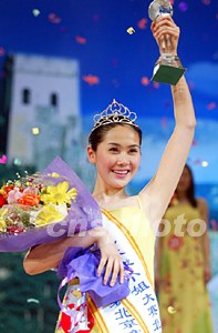 2003環(huán)球小姐北京賽區(qū)決賽八日晚在北京舉行,三十名佳麗參加角逐,來(lái)自天津的十八歲學(xué)生劉君獲得冠軍,她將與另外四名獲勝選手參加本月下旬舉行的中國(guó)區(qū)總決賽。作者:毛建軍