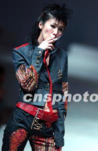 中國“威鵬”服裝春天在北京展示新款牛仔裝,狂放不羈的設(shè)計風(fēng)格凸顯現(xiàn)代人的另類時尚觀念。作者:盛佳鵬