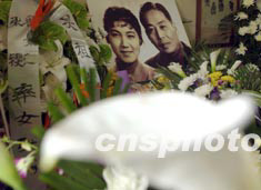 騰出來設(shè)作靈堂的客廳正中,鮮花簇?fù)碇粡垍亲婀馀c新鳳霞的合影。照片上兩人正年輕,都在動人地微笑。
