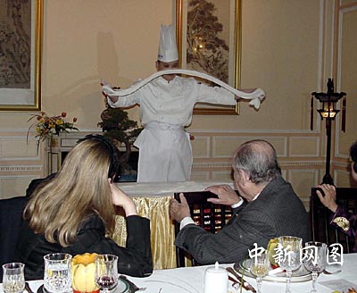 中新網(wǎng)巴黎4月13日電(記者蔚中)“哇,這簡直是天使的頭發(fā)!”當(dāng)親眼目睹北京面點(diǎn)師如變魔術(shù)似地將一公斤面頃刻間變成了十余公里長、細(xì)可穿針的龍須面時,法國前總理巴爾伉儷情不自禁地贊嘆道。