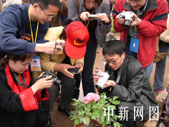 網(wǎng)絡(luò)媒體記者聚焦洛陽牡丹。玉樹 攝