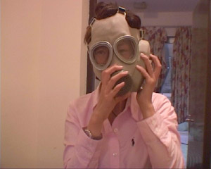 香港鳳凰衛(wèi)視女記者閭丘露薇在伊拉克試戴鋼盔
