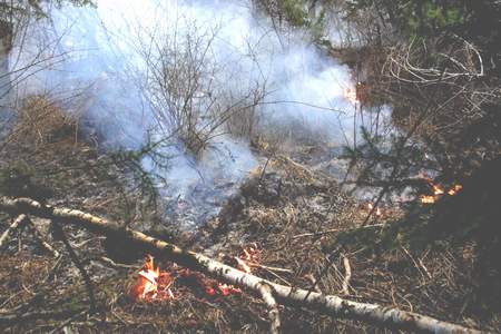火情就是命令,接到火警后,迭部林業(yè)局和迭部縣召開緊急會議,緊急抽調(diào)人員前往救火,并成立了由迭部縣縣長楊志才、迭部縣林業(yè)局局長黃志洋為臨時總指揮的現(xiàn)場指揮部,設(shè)置滅火、后勤、偵察、醫(yī)療救護(hù)等小組,緊急投入撲救工作。在進(jìn)入崗嶺溝的不遠(yuǎn)處,記者看見濃煙彌漫,隱天蔽日,濃烈的焦糊味夾雜著絲絲煙塵撲面而來,在崗嶺溝兩邊的山坡上,不時會看到?jīng)_天火光,沿著溝底前行,沿途被大火燒毀的林地里橫七豎八躺著許多百年古松的殘根斷枝,慘狀不堪入目。
