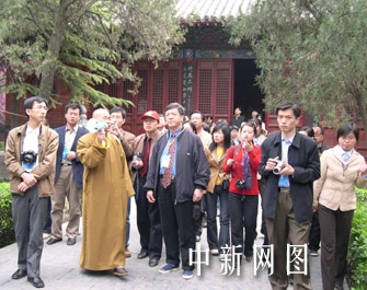 洛陽白馬寺和尚為網(wǎng)絡(luò)媒體記者當(dāng)“導(dǎo)游”。玉樹 攝