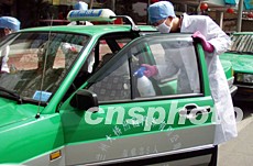 圖:預(yù)防“非典”甘肅蘭州的士進(jìn)行消毒