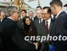 國(guó)務(wù)院總理溫家寶,二十五日在北京陪同法國(guó)總理拉法蘭(左二)參觀國(guó)家大劇院工地。作者:滿(mǎn)會(huì)喬