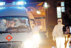 晚上11時(shí),兩名全身武裝的醫(yī)生和兩名司機(jī)上了兩輛隔離車,隔離車迅速啟動(dòng),這兩輛開往地壇醫(yī)院的隔離車出發(fā)了。接著,其他醫(yī)務(wù)人員也鉆進(jìn)隔離車,開往北醫(yī)三院的5輛隔離車也開動(dòng)了。晚上11時(shí)30分許,35輛隔離車全部出發(fā),另外兩輛備用隔離車也停在京昌路上隨時(shí)等候調(diào)遣。