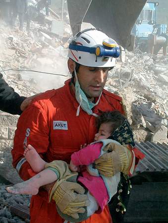 就象是做了一場(chǎng)惡夢(mèng)的穆斯塔法在接受土耳其國(guó)家通訊社采訪時(shí)心有余悸地回憶說(shuō):“迷迷瞪瞪間,我就象在做一場(chǎng)惡夢(mèng)――床在晃,燈在搖,桌子在顫動(dòng),天花板在旋。就在我想搞清楚自己是在做夢(mèng)還是清醒的時(shí)候,天花板轟地一聲向我砸了下來(lái),慶幸的是,堅(jiān)固的床架子頂住了塌下來(lái)的天花板。住在我們隔壁房間的老師順著廢墟摸了過(guò)來(lái),把我們這個(gè)房間的同學(xué)全都安全地領(lǐng)了出來(lái),這簡(jiǎn)直就是一個(gè)奇跡!