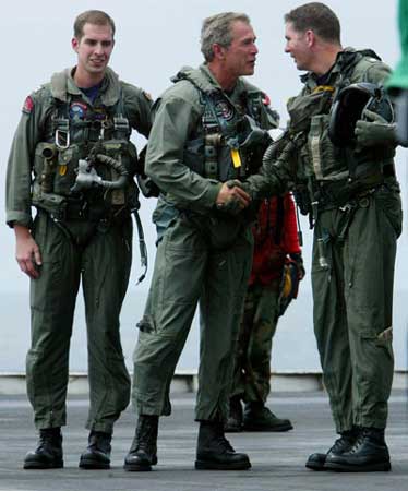 暗藏玄機(jī)之四,布什政府未來(lái)行動(dòng)之四:布什乘戰(zhàn)機(jī)上航母做演講這一系列動(dòng)作顯然還有明顯的國(guó)內(nèi)政治意圖。美國(guó)《紐約時(shí)報(bào)》聲稱,讓布什上航母演講除了是撈最大程序的政治影響之外,沒(méi)有其它的解釋。布什總統(tǒng)被充滿笑臉的美國(guó)大兵包圍的情景顯然是2004年競(jìng)選連任最佳的布景!(聞新芳)