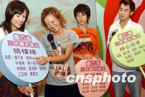 由香港無線電視制作的《盧巧音~三色糖的情式》特輯首映會五月二日在香港舉行,圖為盧巧音、譚俊彥、周永恒、江芷妮等出席首映會。錢興強 攝