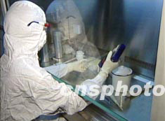 中科院日前加緊科技攻關,盡全力攻克“非典”病毒。目前中科院所屬研究機構啟動了對“大環(huán)內(nèi)脂抗生素”、“核甘類”、及“多肽類”三個方面的研究工作,期望在一至兩個月內(nèi)找出抗“非典”的藥物,并致力于對“診斷試劑”和“防治非典疫苗”方面的研究。中新社 圖