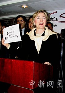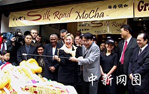 讓蔡老板開(kāi)心的是今天舉行的新張儀式,聯(lián)邦參議員希拉里·克林頓成為小店新張儀式的主禮嘉賓。今天上午,希拉里與華埠人士在“絲路”咖啡屋探討振興華埠議題,在持續(xù)了數(shù)十分鐘的討論和記者會(huì)后,希拉里走到門(mén)口,拿起剪刀為咖啡屋開(kāi)幕剪彩。一時(shí)間鑼鼓喧天、獅舞人笑,給冷清多日的華埠帶來(lái)了喜氣。