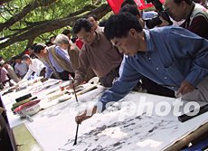圖為榕城書(shū)畫(huà)名家現(xiàn)場(chǎng)繪制榕樹(shù)題材畫(huà)卷。