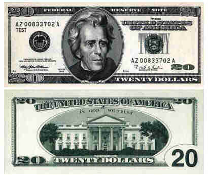 新版20美元的最重要特點(diǎn)就是正面和反面都有明顯的“不間斷柔和色彩”。同時(shí)在“去除圓形框框”的杰克森頭像左側(cè)加上了藍(lán)色的老鷹形像。鈔票右側(cè)則美財(cái)政部徽張下有“TWENTY USA, USA TWENTY”字樣。鈔票背面為數(shù)十細(xì)小的“20”字樣。美財(cái)政部介紹,由于20元面值的美鈔是各國(guó)犯罪分子競(jìng)相偽造的“重災(zāi)區(qū)”,因此專家首先對(duì)其進(jìn)行了“重新設(shè)計(jì)”。今后兩年,新版50美元和100美元鈔票將分別面世。隨后,美國(guó)將根據(jù)情況決定是否對(duì)小面值(10元和5元鈔票)進(jìn)行“現(xiàn)代化改裝”。
